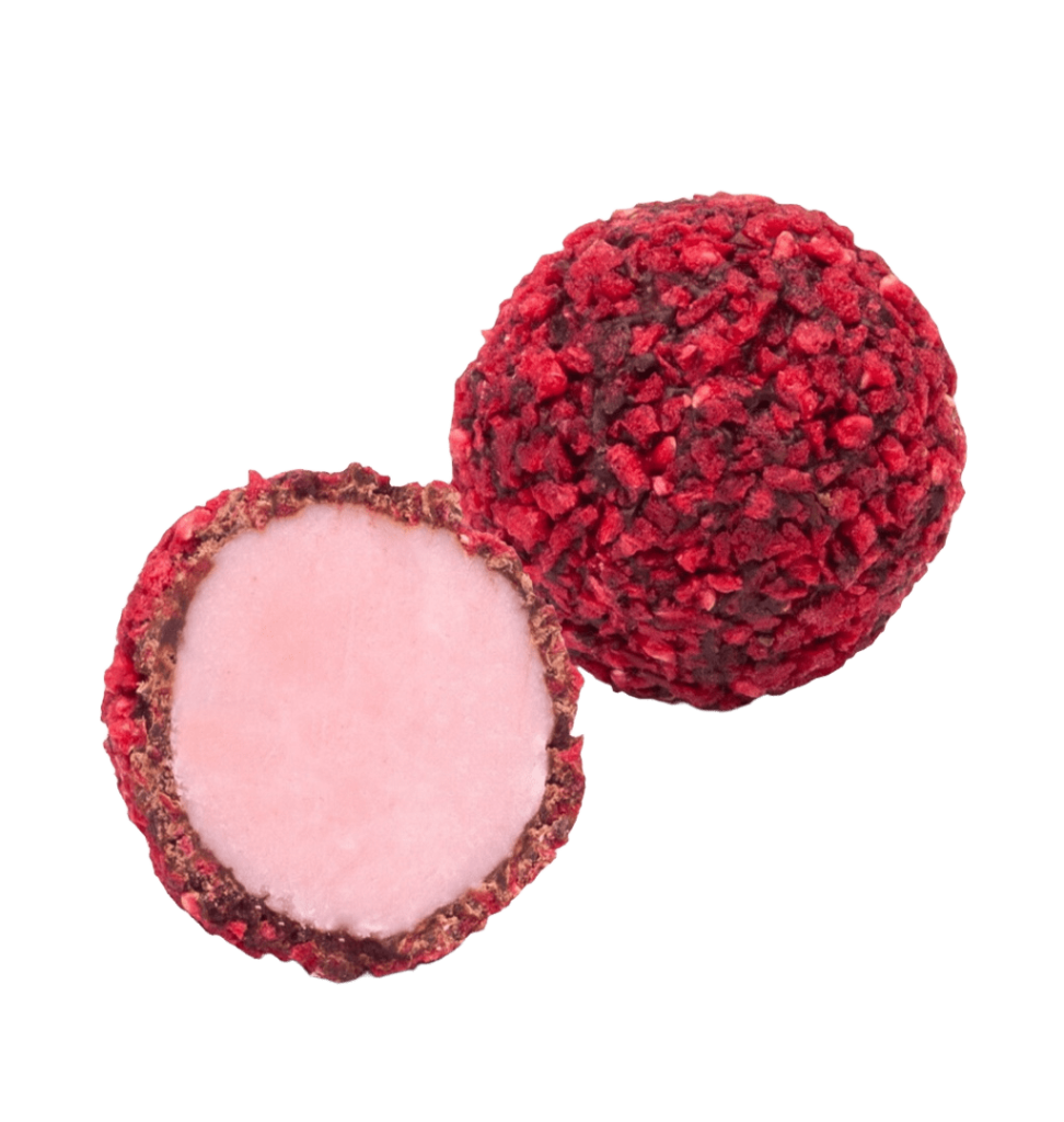 Конфеты Шоколадная Малина Описание: Кремовый корпус с добавлением натуральных сливок, сливочного масла, спирта. Конфета глазирована темным шоколадом и обсыпана сушенными ягодами малины.