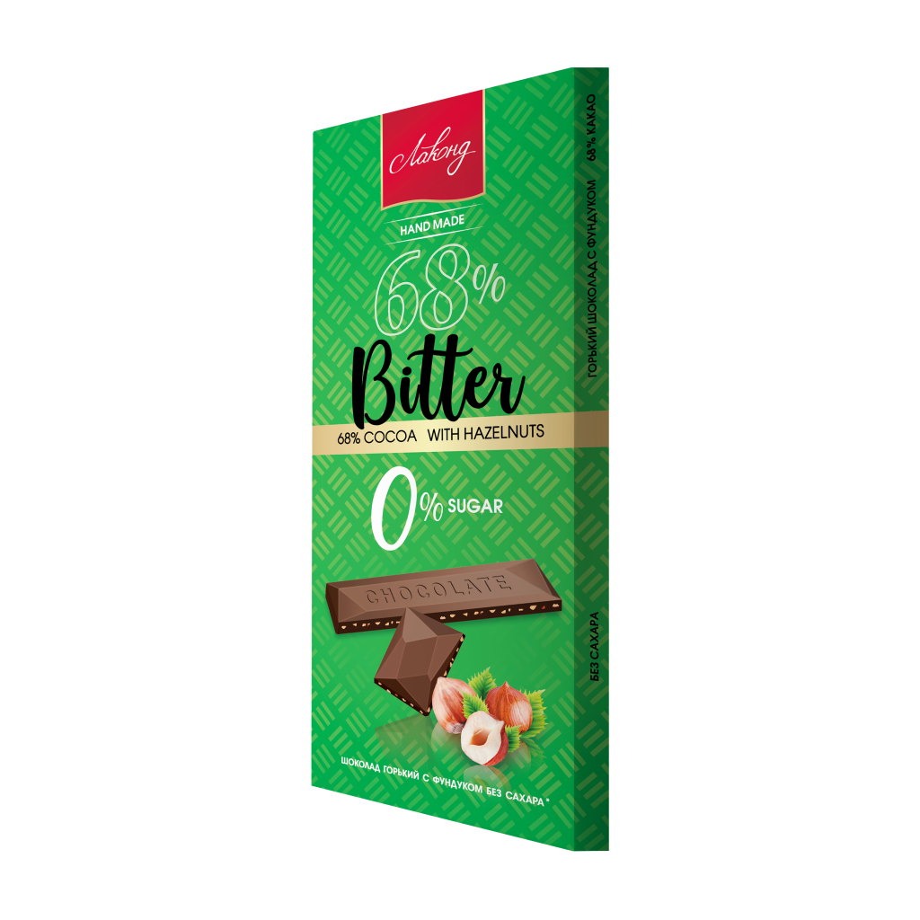 - В составе шоколада 68% какао-продуктов отборного качества и дробленный фундук.