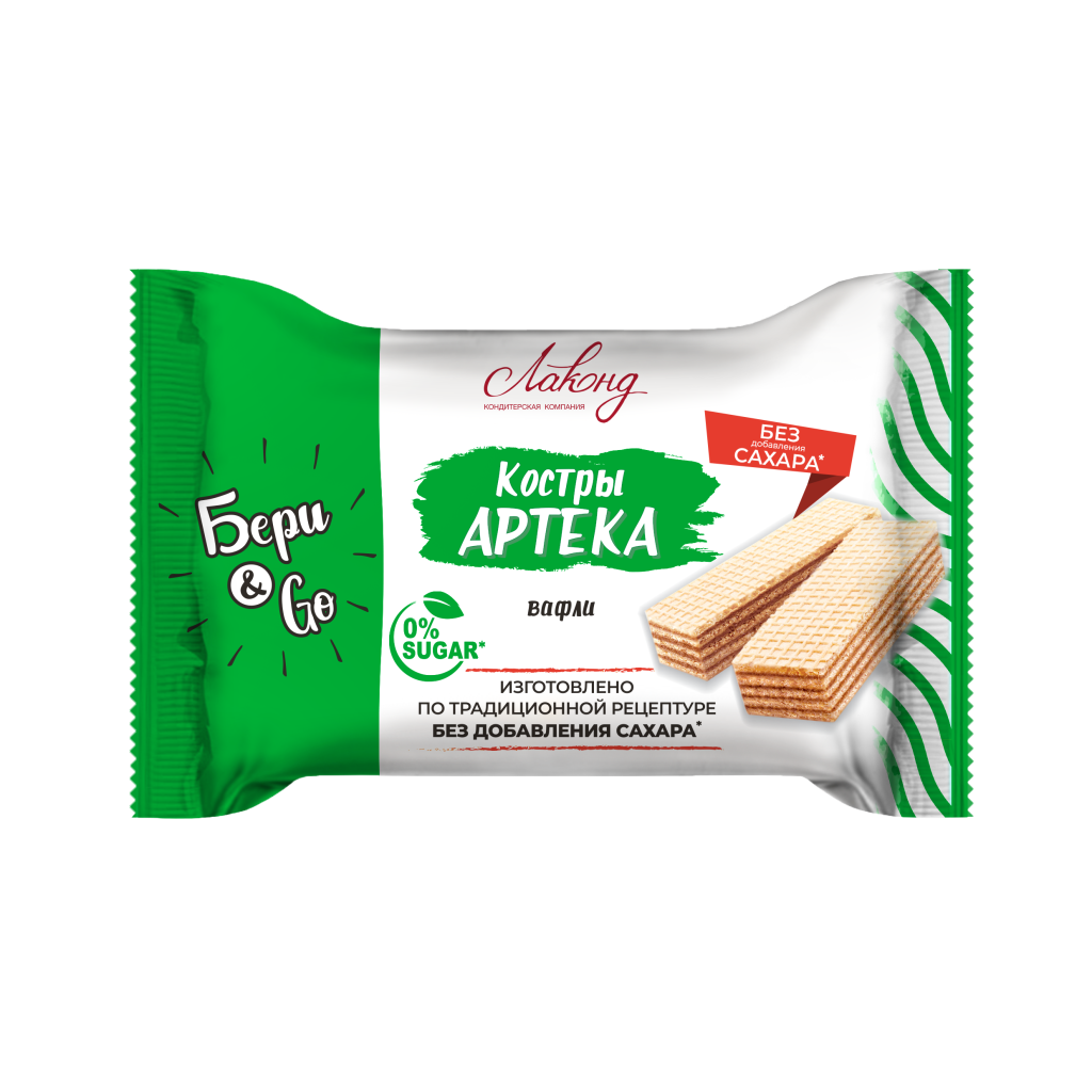 - Классическая рецептура вафель «Костры Артека», но без добавления сахара: продукт из 5ти слоев вафель и 4х слоев шоколадной начинки.